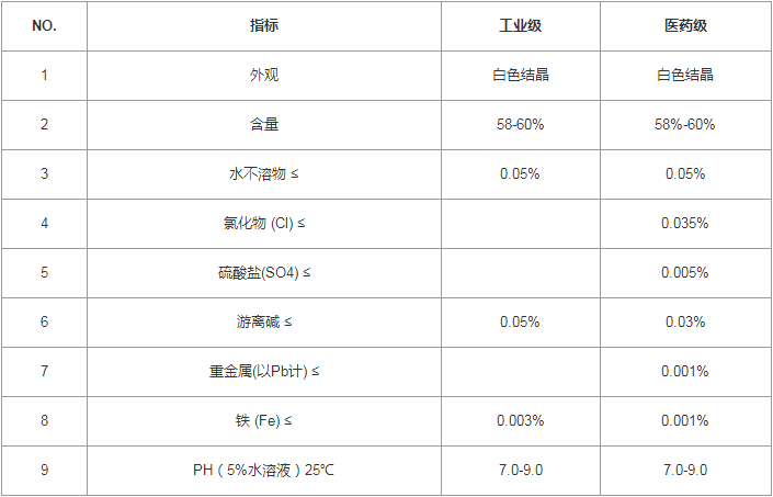 性 狀:本產品為無色或白色晶體,相對密度 1.528g/cm3 ,熔點 58°C,水溶性:762 g/L (20°C), 溶于水和乙醚,微溶于乙醇。